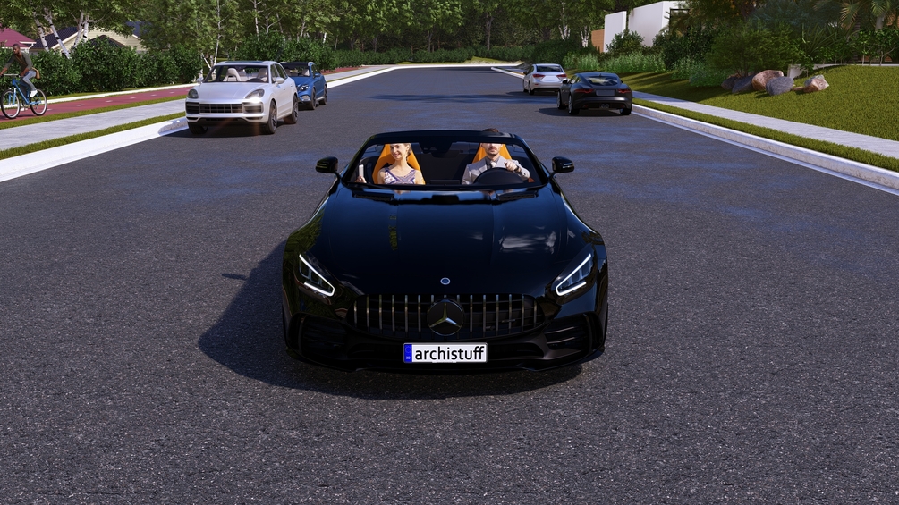 Animated Mercedes AMG Cabriolet V8 BiTurbo AMG Vehicle with Couple Inside in Lumion 14 or Higher.
